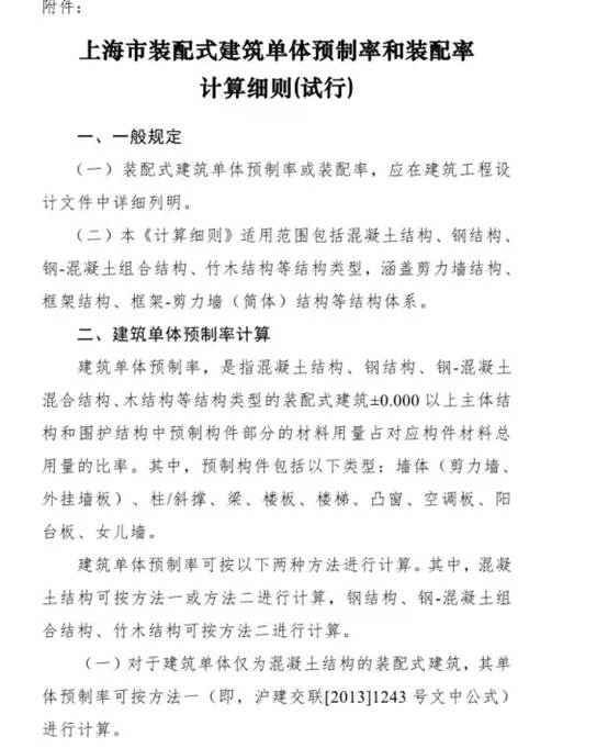 附件:《上海市裝配式建筑單體預制率和裝配率計算細則(試行)》