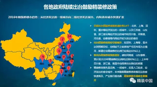 2016年各地陸續出臺全裝修、精裝修的相關條例,在綠色化、住宅產業化的推動下,“毛坯房”將逐步退出房地產的歷史舞臺。
