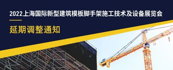 鑒于上海及全國多地新冠疫情防控形勢嚴峻,根據政府當地疫情防控要求,為了保障參展商、觀眾及各位合作伙伴的生命與健康安全,同時也確保展商的參展效果,經多方商議后審慎決定:原定于2022年5月25日-5月27日在國家會展中心(上海)舉辦的2022上海國際新型建筑模板腳手架施工技術及設備展覽會將延期舉行