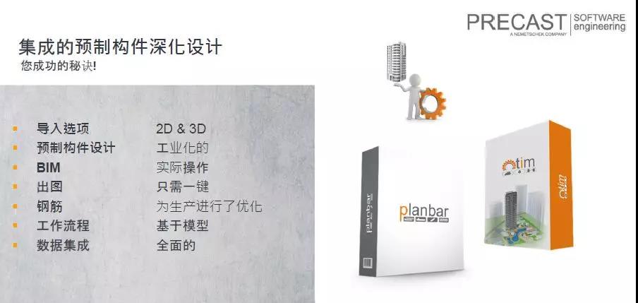 PRECAST是內(nèi)梅切克集團(tuán)的一款核心軟件技術(shù),是專門用于預(yù)制混凝土行業(yè)的中央控制系統(tǒng)。內(nèi)梅切克的核心是一個開放的的系統(tǒng)平臺,通過旗下兩款核心產(chǎn)品PLANBAR、TIM,實(shí)現(xiàn)AEC工業(yè)(建筑、過程和施工行業(yè))整個過程的3D可視化。