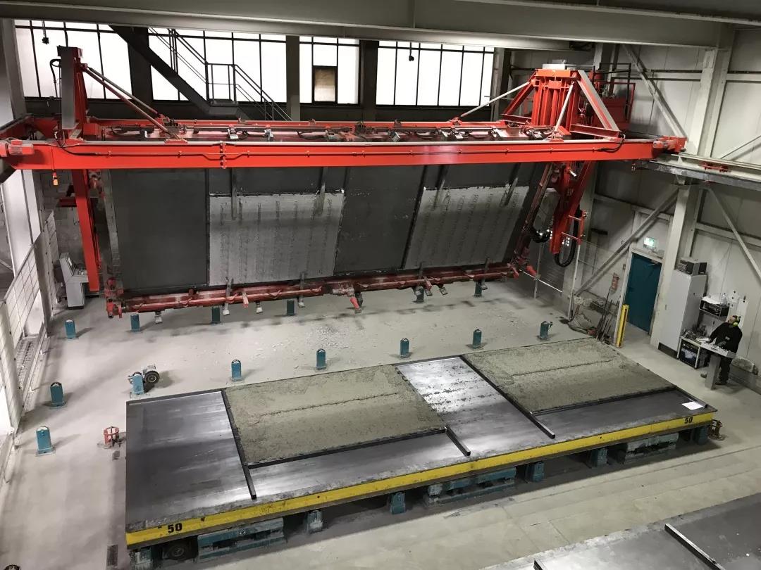 INNBAU工廠是一家多層預(yù)制工廠,6個工人8個模臺日產(chǎn)1000㎡,合理規(guī)劃廠區(qū)布局實(shí)現(xiàn)了半自動化的高效生產(chǎn)。其生產(chǎn)的預(yù)制樓板和雙面墻在德國市場占有很高份額。目前在中國市場已有成功的項目。