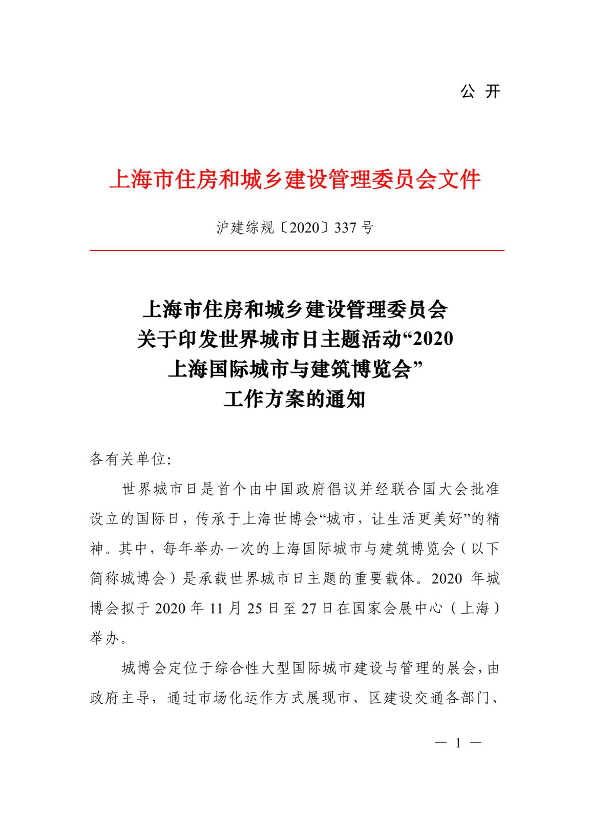 “2020上海國際城市與建筑博覽會”工作方案的通知,附紅頭文件如下: