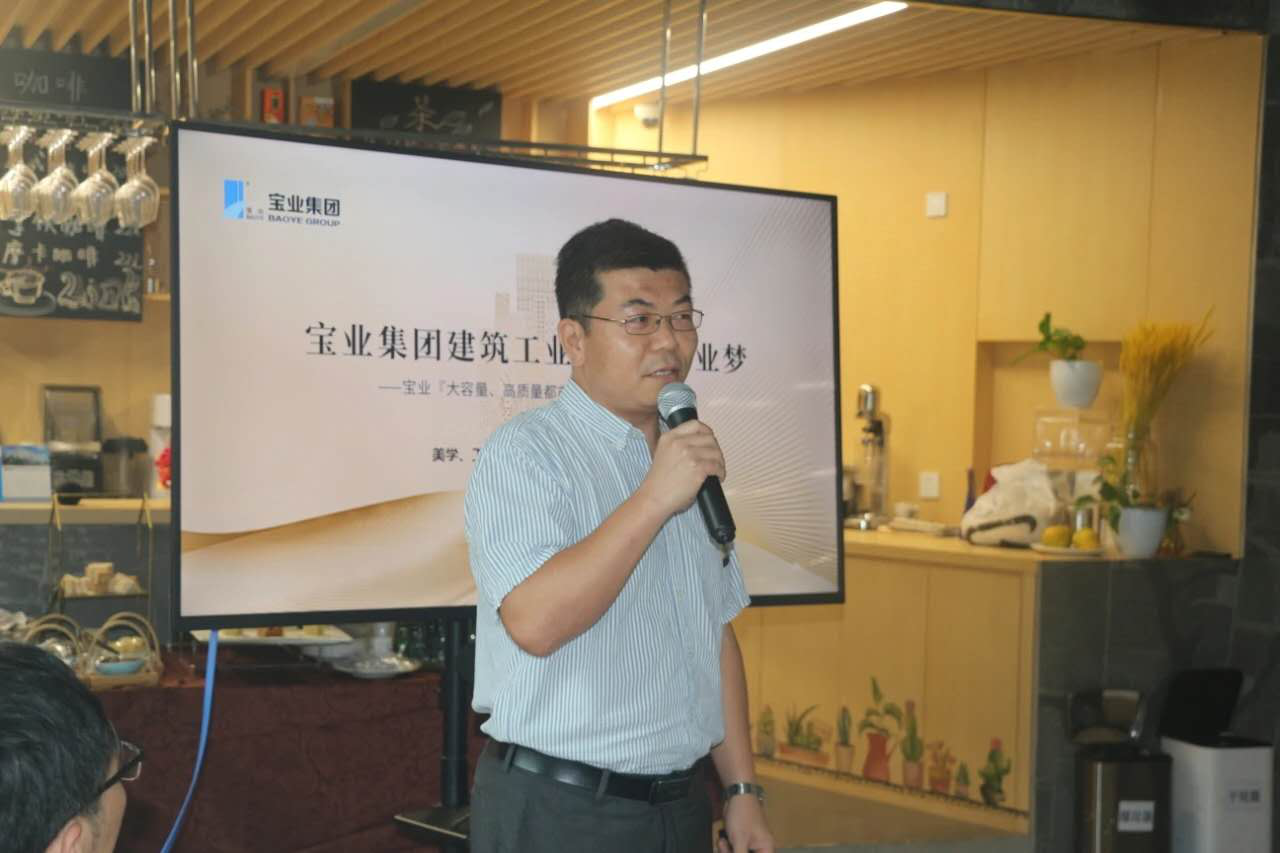 接著,寶業(yè)集團(tuán)上海公司總經(jīng)辦副主任張榮先生進(jìn)行了題為“寶業(yè)建筑工業(yè)化制造業(yè)集群——工業(yè)、美學(xué)、綠色產(chǎn)業(yè)鏈的融合共生”的主題發(fā)言。他從汽車的生產(chǎn)來說明裝配式建筑,指出不能簡(jiǎn)單地理解PC,隨著建筑行業(yè)的發(fā)展,建筑美學(xué)越來越上升至生活美學(xué)方面。建筑行業(yè)不僅僅標(biāo)準(zhǔn)化組合式的工業(yè),更是工業(yè)美學(xué)和產(chǎn)業(yè)的完美統(tǒng)一。