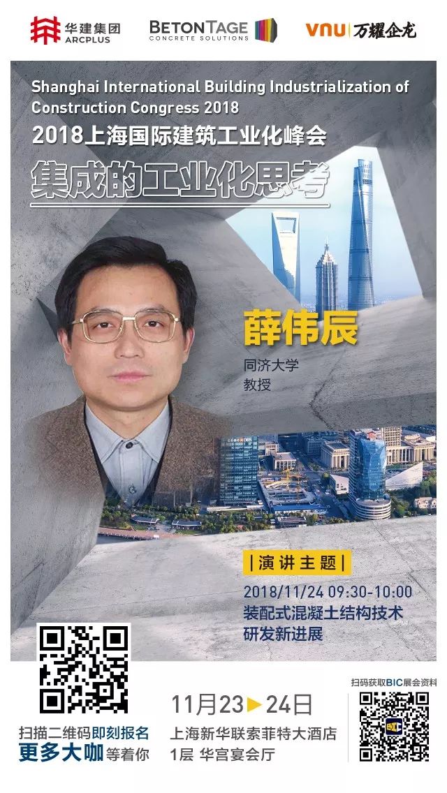 薛偉辰教授,同濟大學建筑工程系教授,博士導師,教育部長江學者特聘教授。長期從事現代預應力結構和預制混凝土結構研究?,F任中國建筑學會工業化建筑學術委員會副理事長、中國混凝土與水泥制品協會預制混凝土結構分會副理事長、上海市建筑工業化專家委員會副主任委員、上海市建筑學會工業化建筑專業委員會主任委員。主編了上海市《裝配整體式混凝土居住建筑設計規程》和《裝配整體式混凝土公共建筑設計規程》。