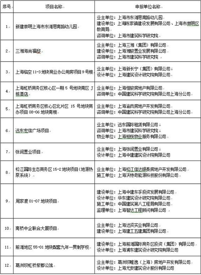 1、2017年度上海綠色建筑貢獻獎(項目)獲獎名單