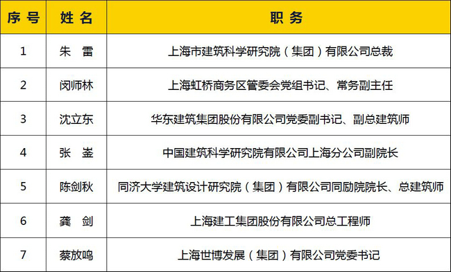2、上海綠色建筑貢獻獎(個人)獲獎名單