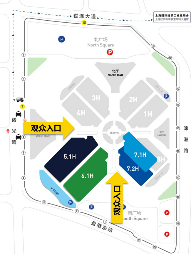 地鐵17號線:至諸光路站下車,經(jīng)2號出口到達(dá)國家會展中心北入口